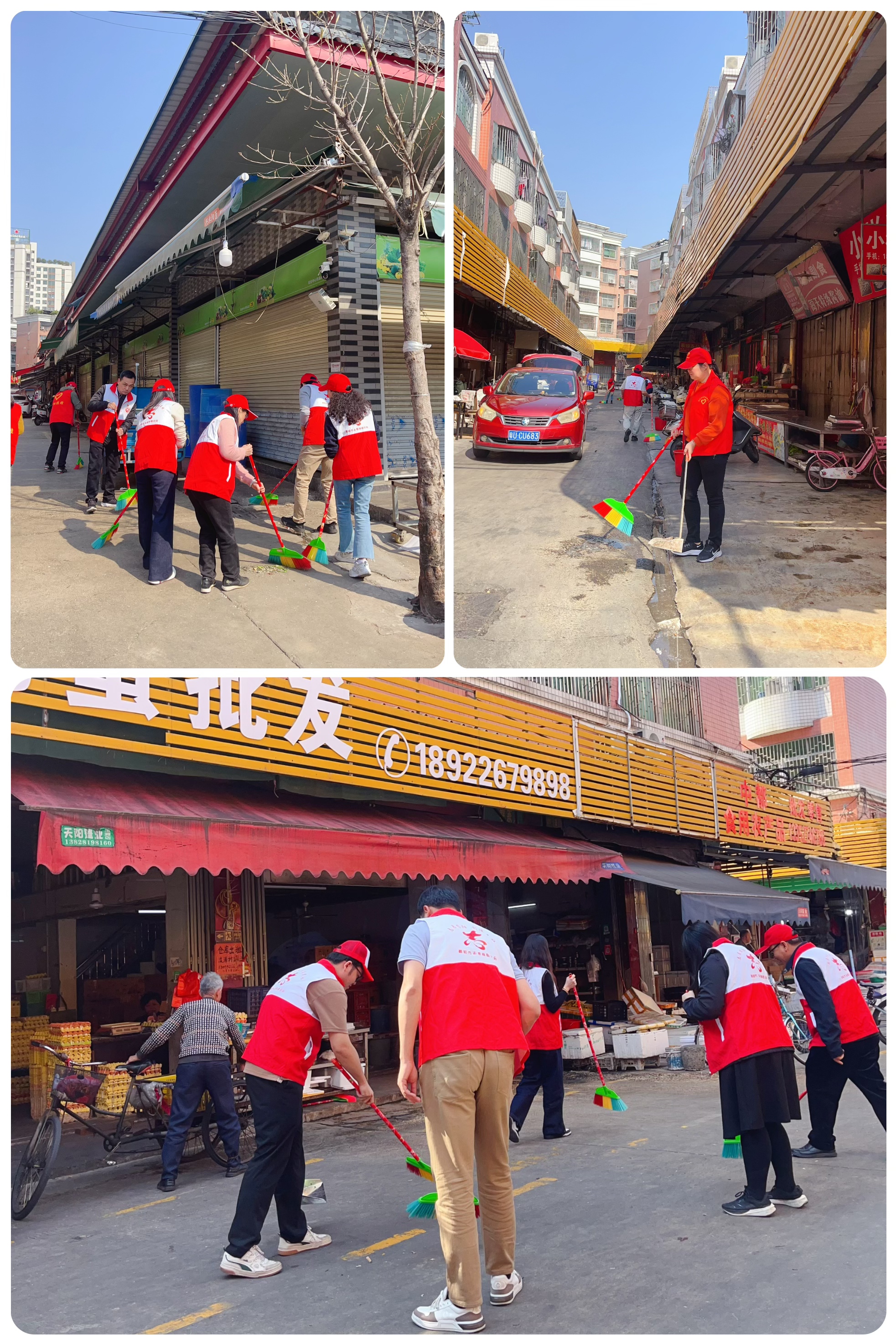 活動(dòng)現(xiàn)場(chǎng),志愿者分成5個(gè)小組,在市場(chǎng)管理人員的有序安排下,有的拿掃把、有的拿簸箕,擼起袖子,熱火朝天地開啟了環(huán)境衛(wèi)生大清掃行動(dòng)。衛(wèi)生死角、墻壁上各類小廣告、地面積水垃圾等都被一一清理干凈,市場(chǎng)環(huán)境面貌在志愿者們的努力下煥然一新。